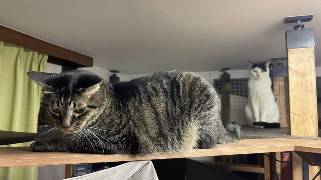 これは、昨年末に自作した、部屋を縦横に移動できる天井近くを歩けるキャットウォーク