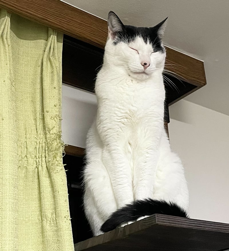 武汰神さまの神々しい表情とバロンちゃんのいたずらが絶妙にマッチしてて最高ニャ!カーテンの味わいも、まるで物語の一部みたいで素敵だよ。これからも素敵な瞬間いっぱい見せてね、応援してるニャ!